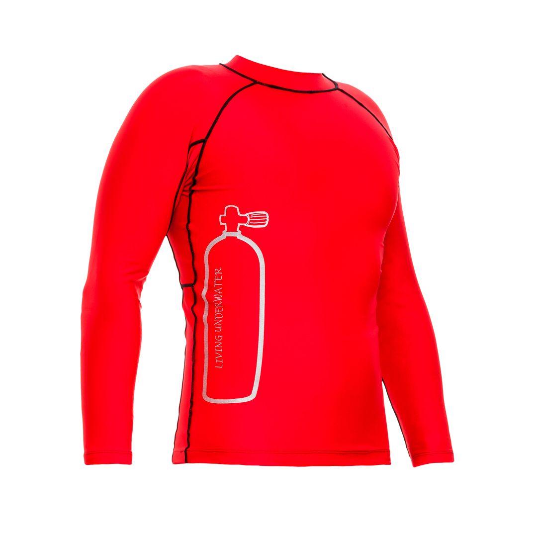 Camiseta em poliéster e elastano com proteção UV 50+, ideal para surf, rash guard e outros esportes de superfície. Confortável, unissex e personalizável.