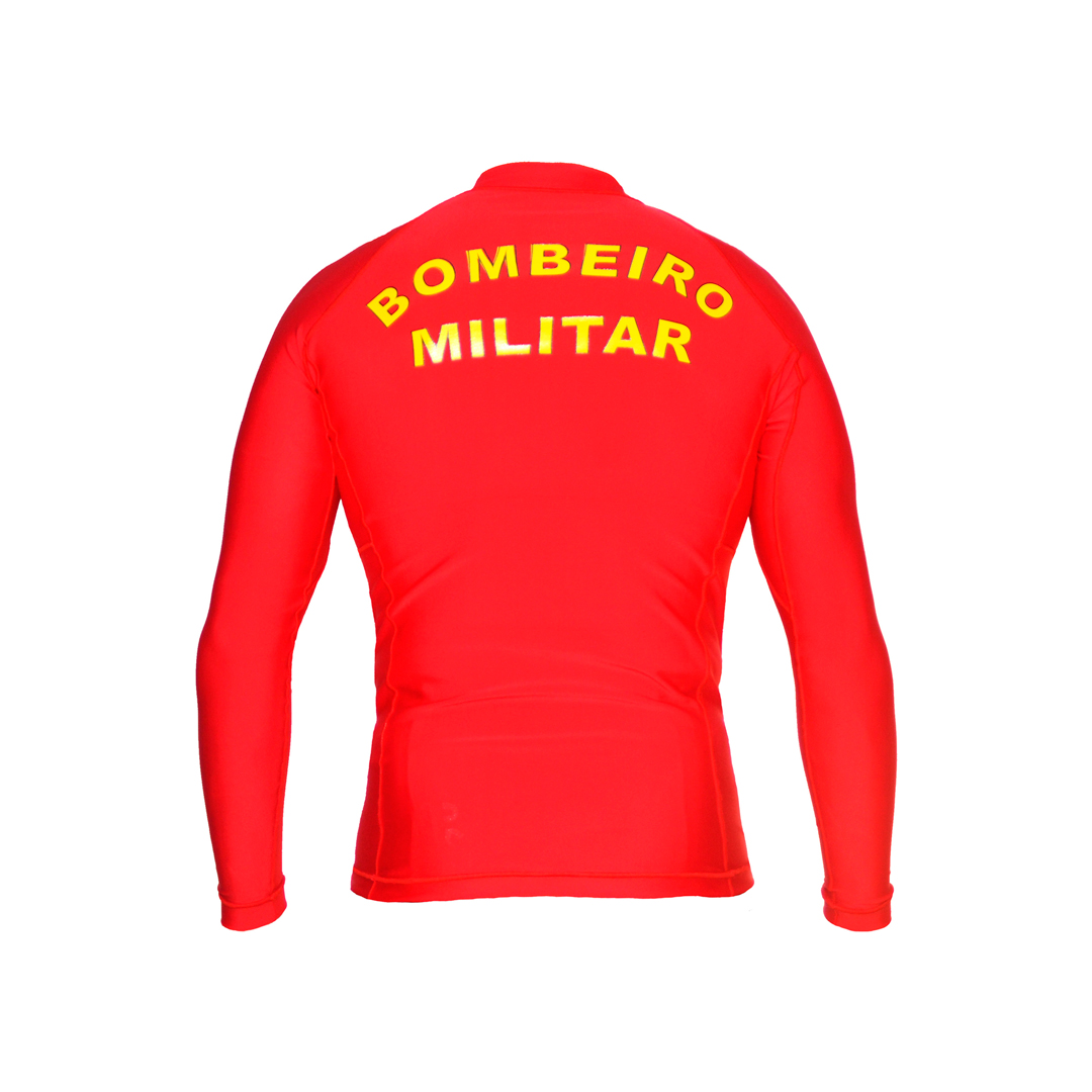 Camiseta em poliéster e elastano com proteção UV 50+. Confortável, leve e ideal para esportes ao ar livre e rash guard.