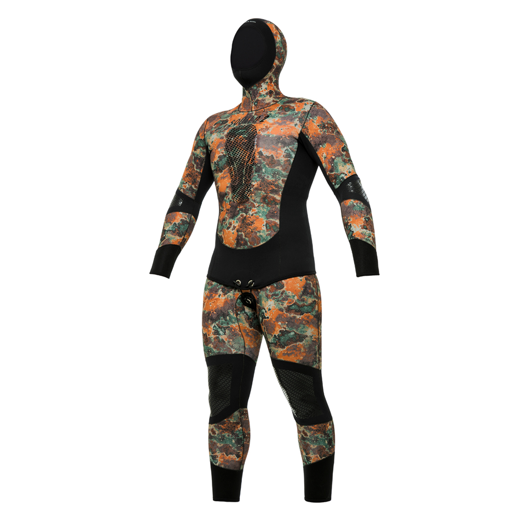 Conjunto premium camuflado voltado para pesca sub profissional. Modelo altamente resistente, com reforços estratégicos e grande mobilidade.