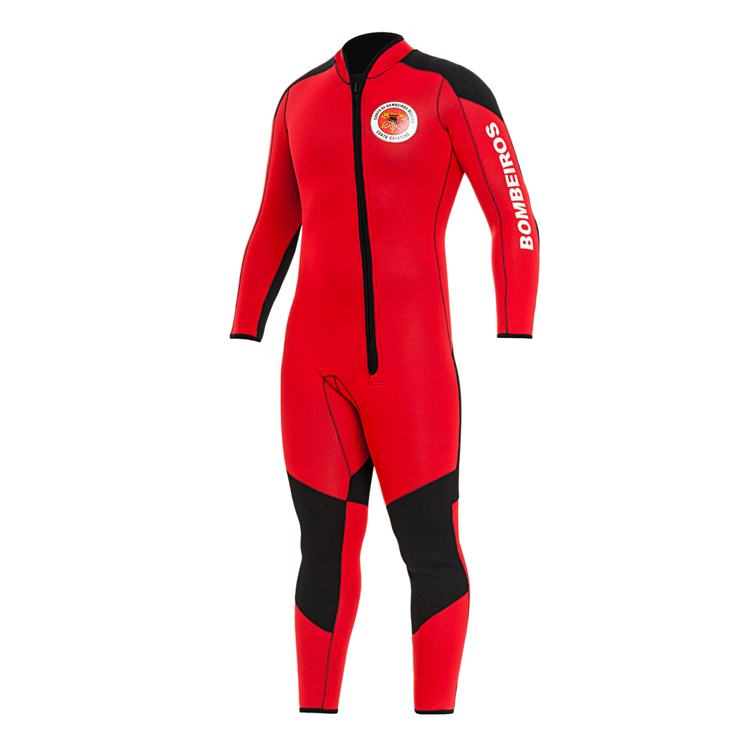 Macacão de neoprene desenvolvido para mergulho em águas frias, oferecendo proteção térmica, flutuabilidade e conforto para atividades diárias do Corpo de Bombeiros. Modelo resistente e funcional para operações subaquáticas e resgates.