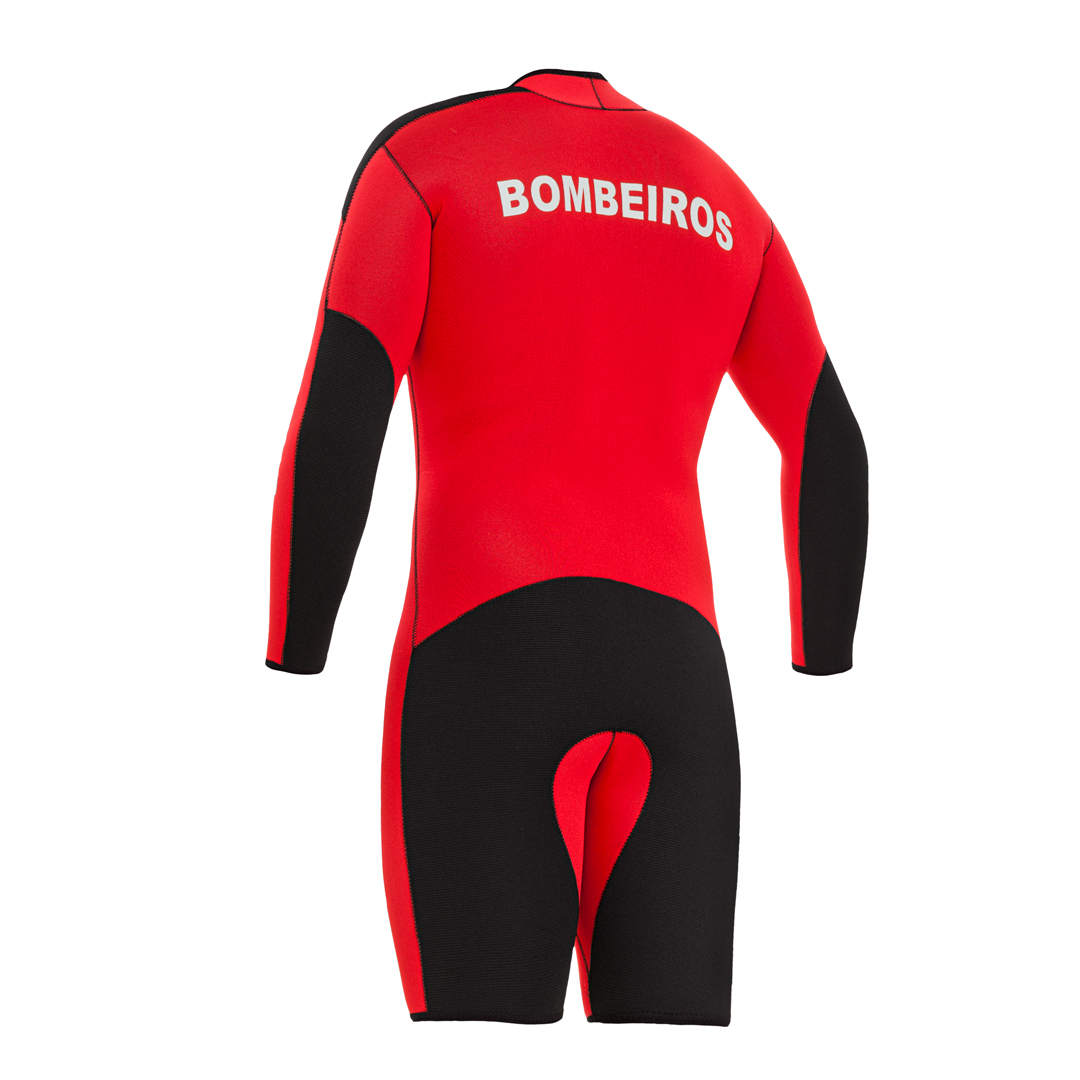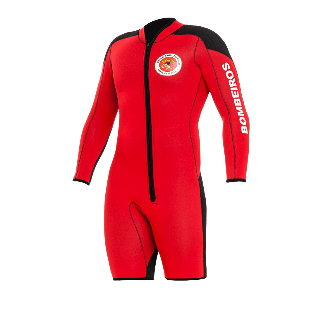 Roupa de neoprene com pernas curtas e mangas longas, ideal para uso em conjunto com a jardineira em dias mais frios. Desenvolvido conforme o padrão do Corpo de Bombeiros Brasileiro, oferece flexibilidade e proteção para operações aquáticas.