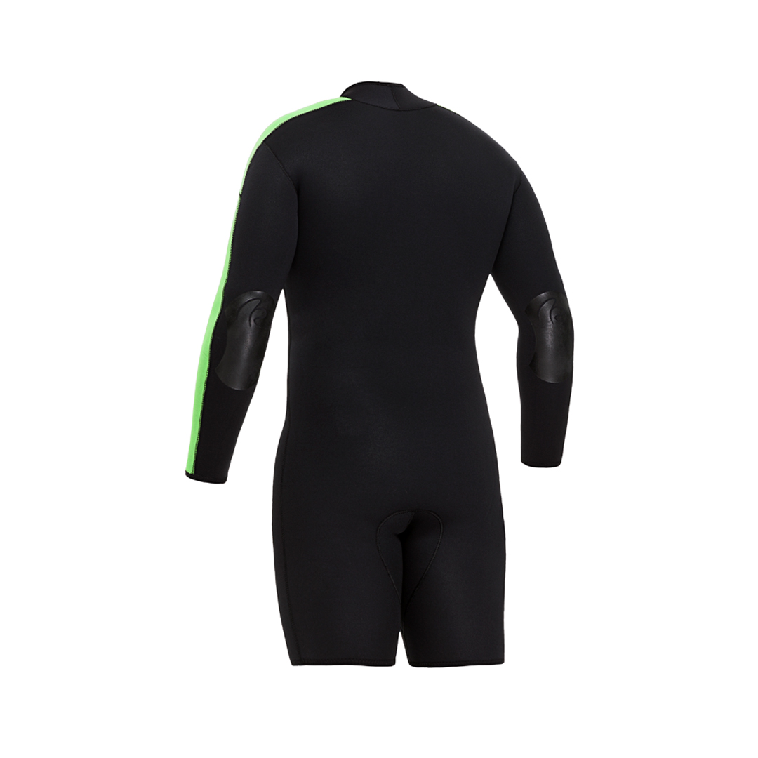 Monoshort de neoprene com mangas longas, sem capuz e pernas curtas, reforço nos cotovelos e zíper frontal. Versátil para mergulho, flutuação e outros esportes aquáticos.